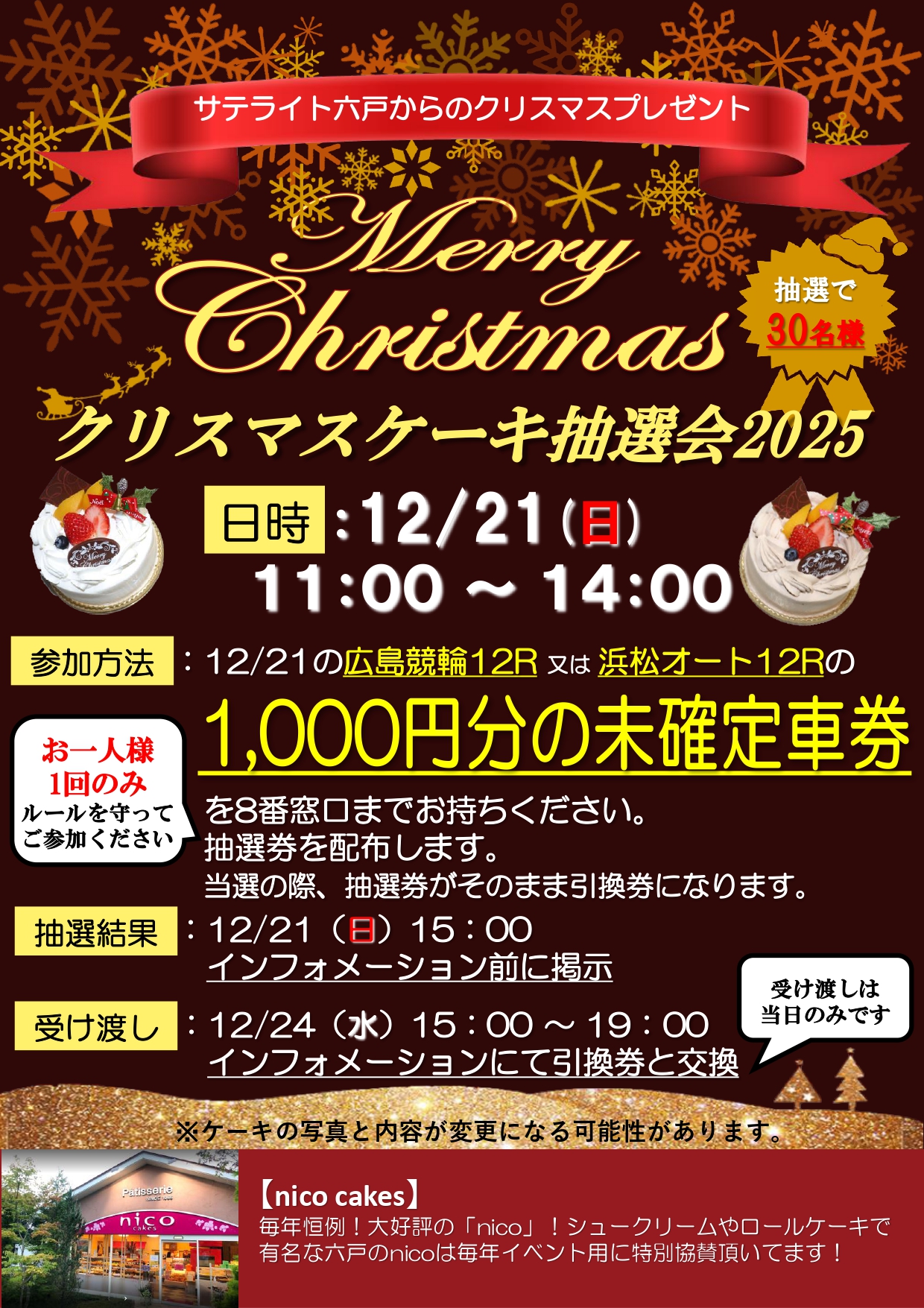 今年もやります!クリスマスケーキ抽選会!